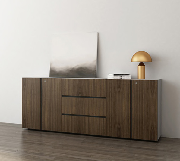 材質:1.采用E1級綠色環(huán)保三聚氫胺紙飾面,抗硬度性能好、具防刮、耐磨、防污、防損、防酸堿、耐火等特點;內部基材為E1級優(yōu)質實木顆粒板,握釘力強、板材經(jīng)防蟲防腐處理、比重合理;甲醛含量≤1.5mg/L,物理、化學性能指標均達到國際相關標準。2.封邊用材;采用PVC封邊條,熱熔膠封邊,封邊嚴密、平整,與整塊板材嚴絲合縫,不脫膠、表面無膠漬。3.五金配件:采用優(yōu)質五金配件,所有五金件作防銹、防腐處理,優(yōu)質鎖具,鉸鏈為緩沖鉸鏈。
