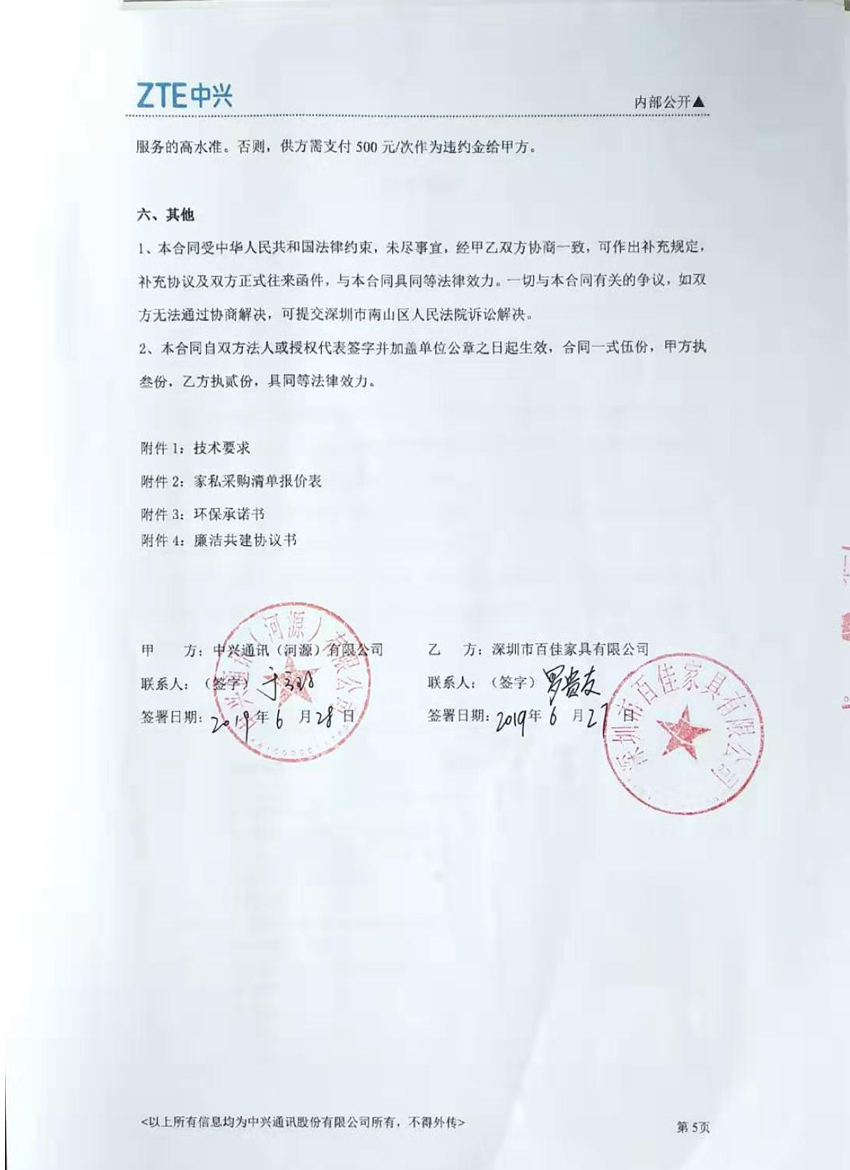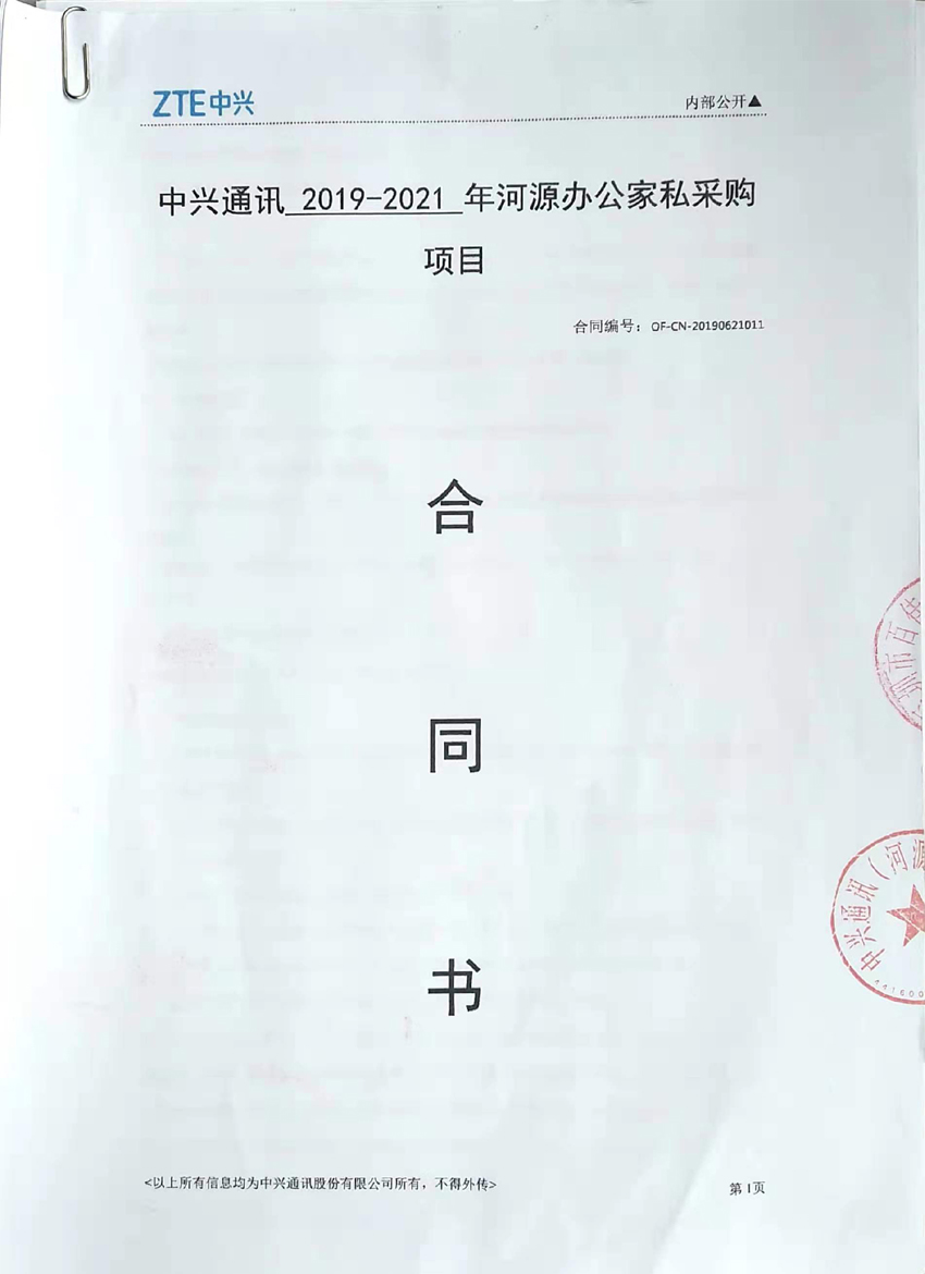 中興通訊2019-2021年河源辦公家私采購 總金額:771100元